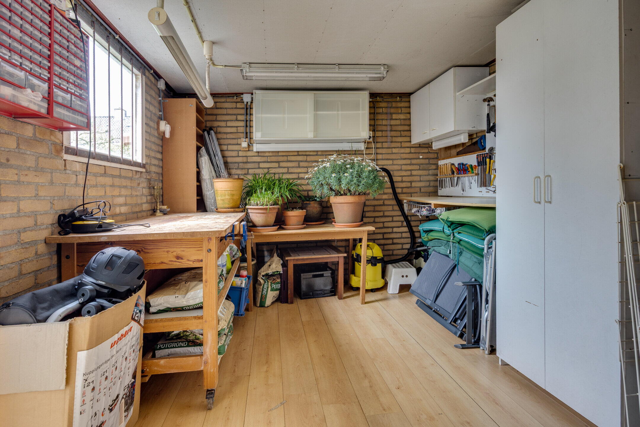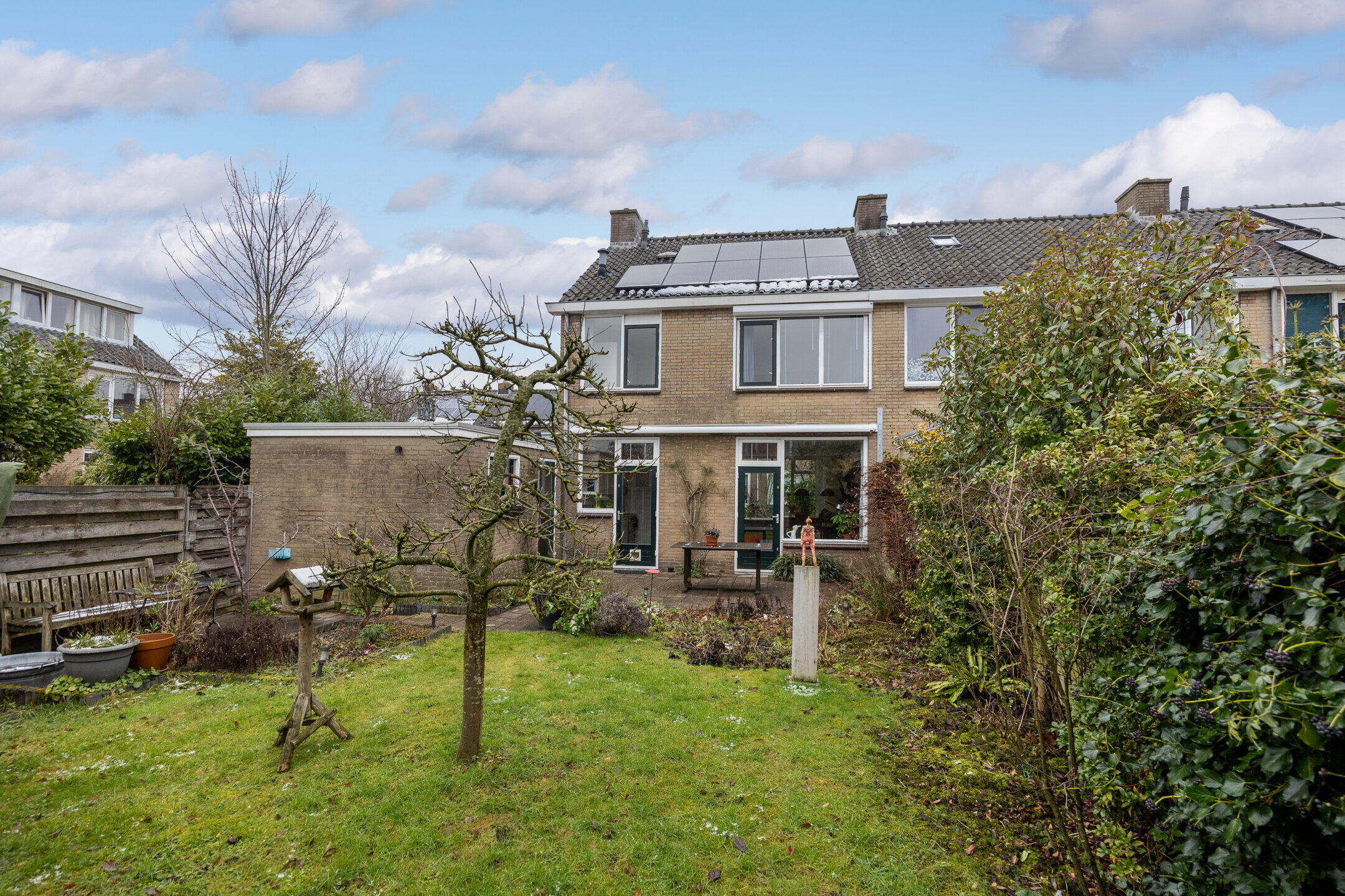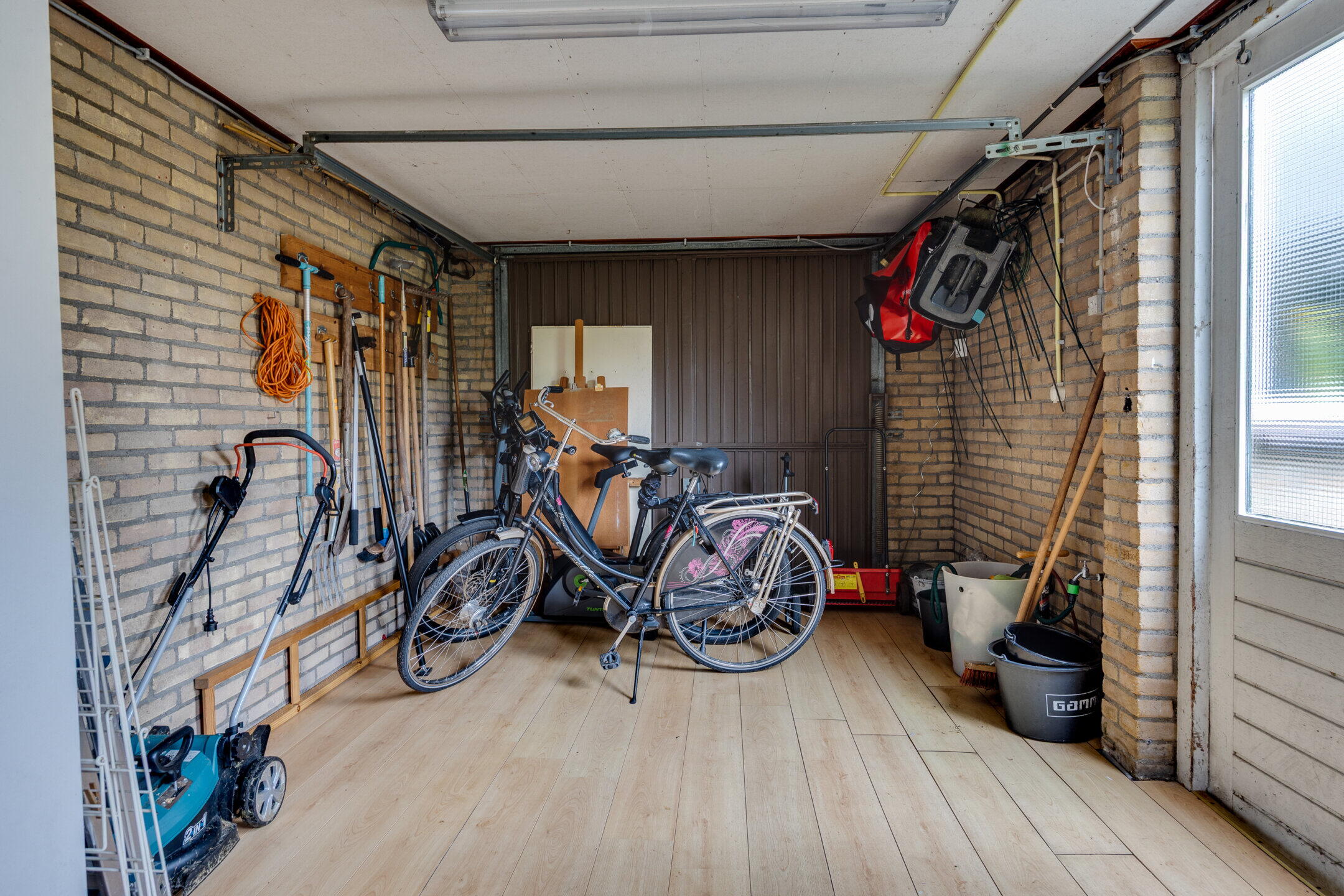 De diepe én brede achtertuin van ca. 128 m² op het westen biedt volop privacy en speelruimte, aangevuld met een praktische aangebouwde stenen garage met oprit. Je kunt op de oprit met gemak 2 auto’s parkeren.
